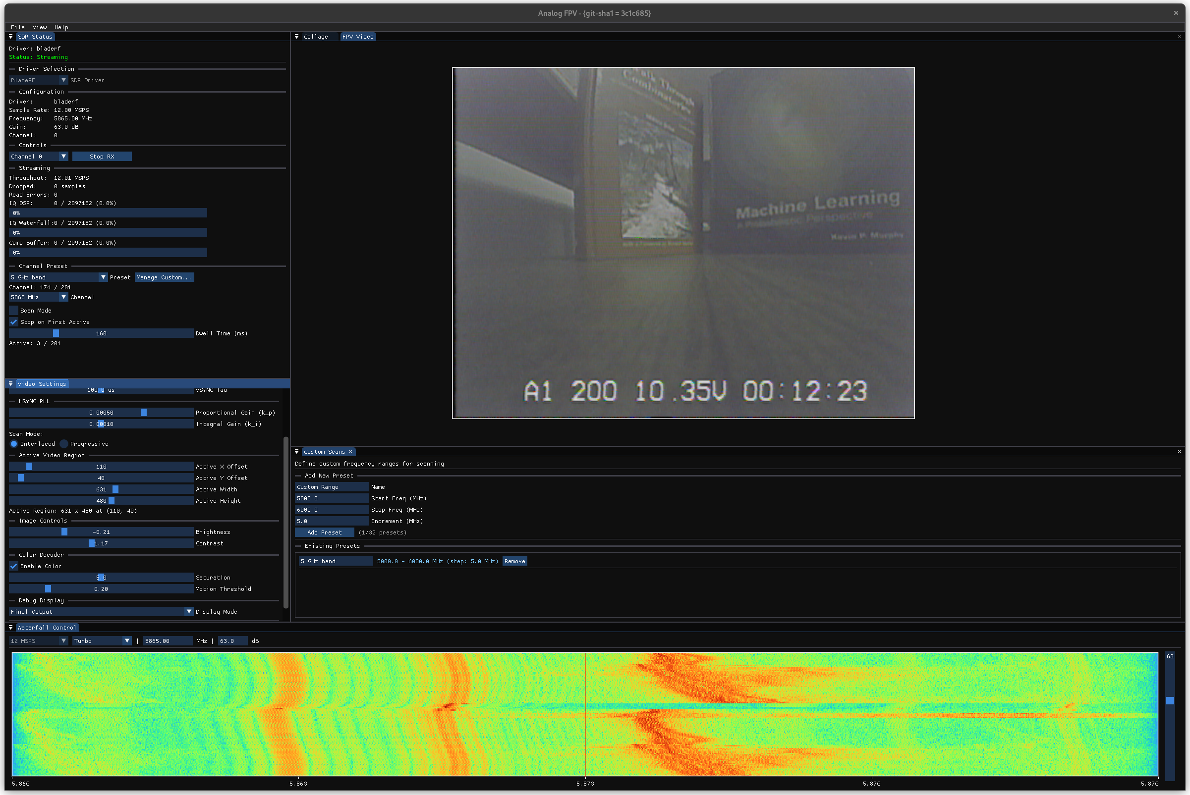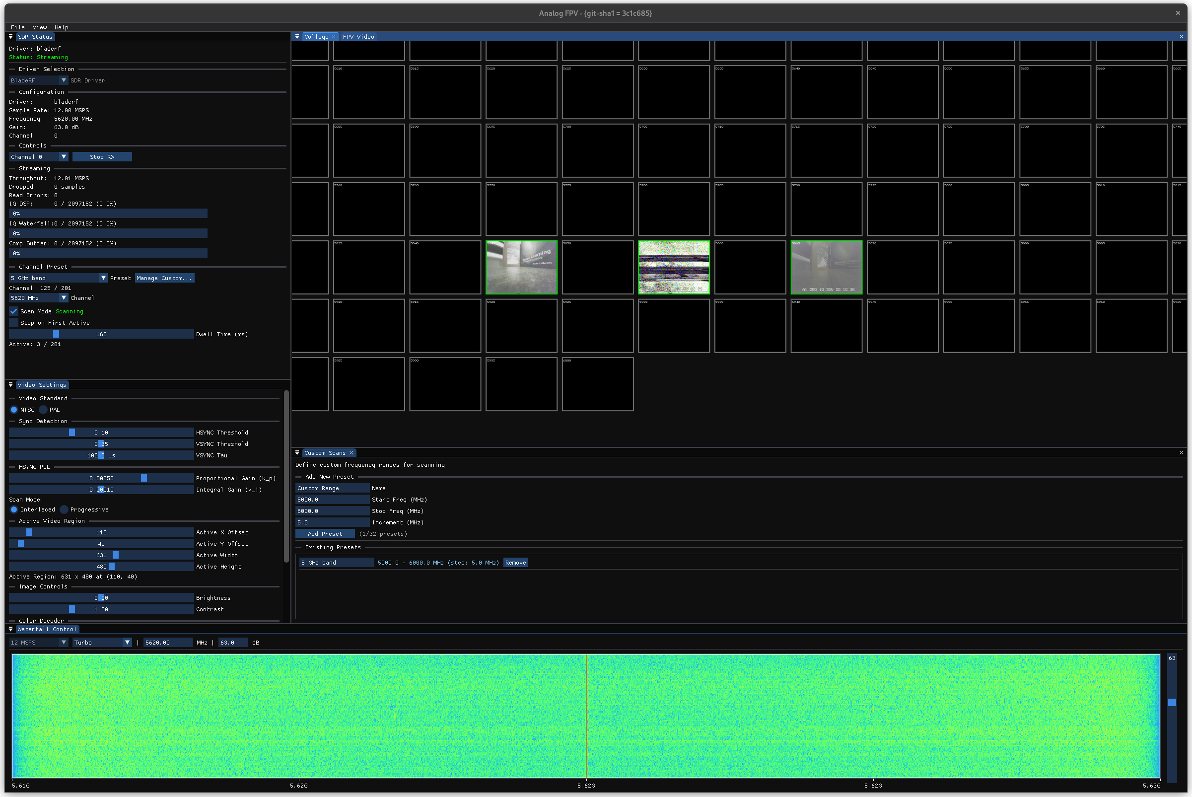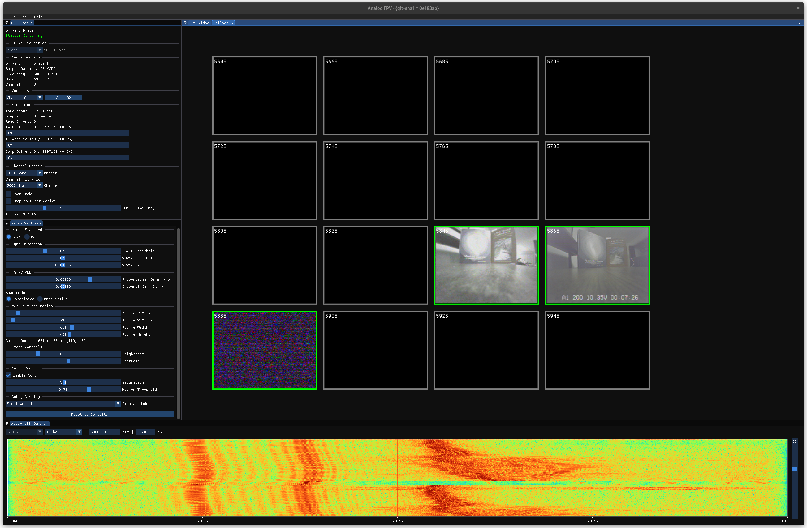 Transform your computer into an FPV video receiver and scanner with Analog FPV. Built with a focus on performance, this application receives and decodes analog video transmissions in real-time. Analog FPV also supports color decoding and custom scanning to build awareness of FPV drones operating within range of your software-defined radio (SDR). This small but highly efficient program requires a minimal number of software dependencies and supports the HackRF One and BladeRF. Analog FPV is sold with a perpetual license with no subscription fees.